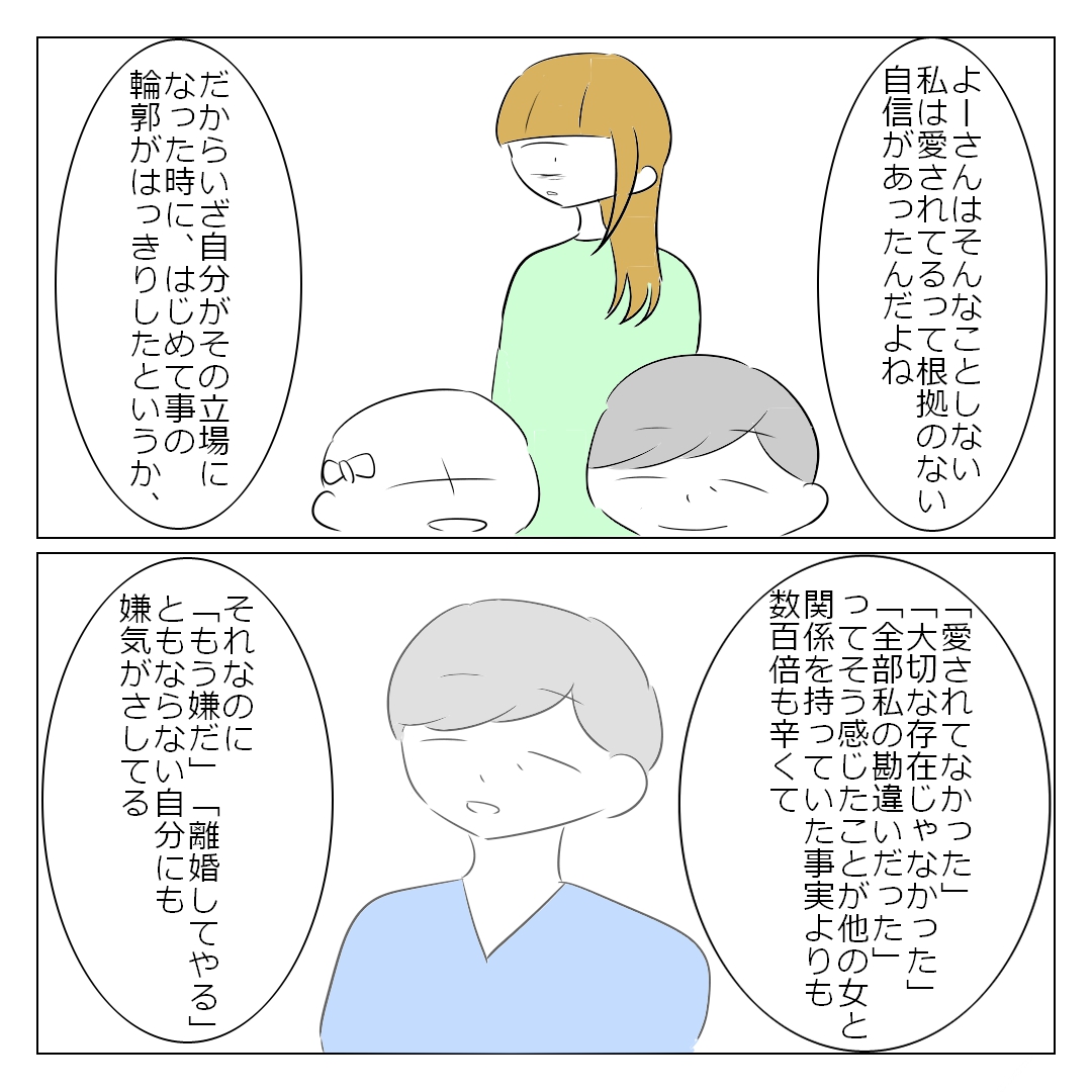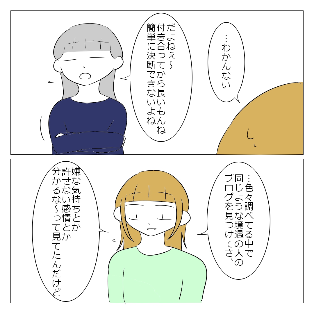 「浮気じゃないから一度は許そう」とかいう判断ができませんでした。